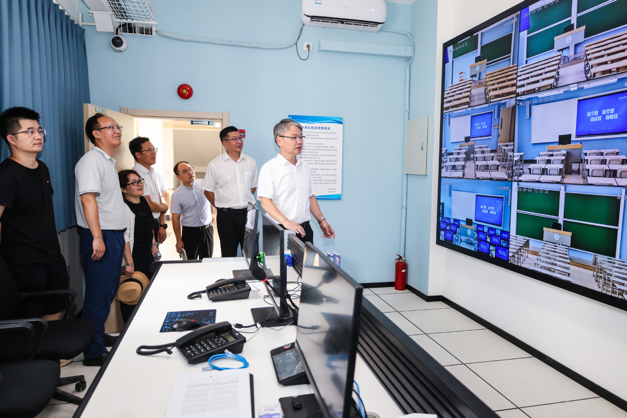 在检查过程中,祁明强调,新学期开学和2024级新生报到在即,各部门、各单位要提高政治站位,更好统筹发展与安全,坚决守牢校园安全防线,主动担当作为,狠抓工作落实。要牢固树立大局意识、责任意识和服务意识,以师生的需求为出发点,科学安排、统筹推进、做实做细开学各项准备工作。要坚持系统思维、持续改革创新,不断提高教育教学、管理服务等工作的精准性和有效性。