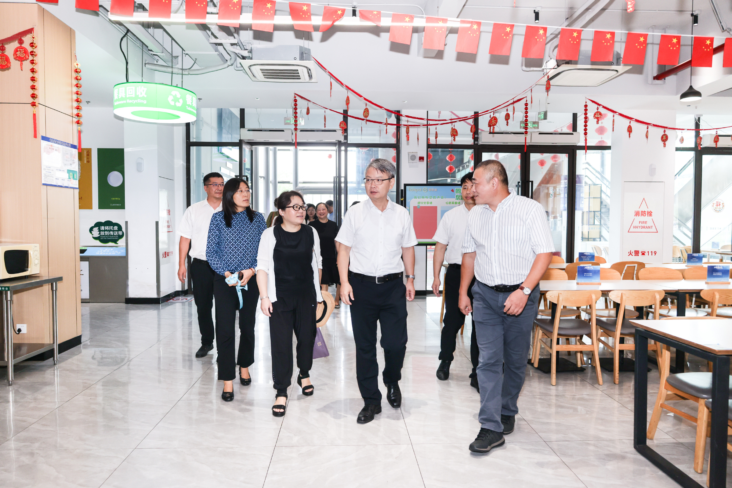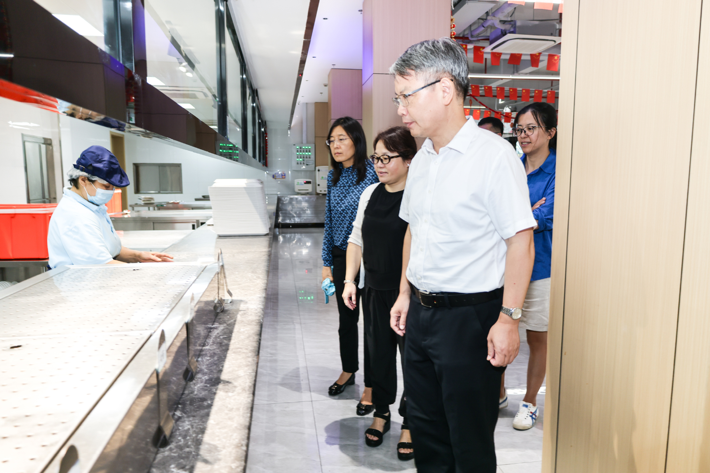 校领导一行先后深入学生和教工食堂、教学楼、学生社区、六期学生公寓等重点场所进行查看,并亲切慰问了工作人员。每到一处,校领导都认真听取情况汇报,全面掌握新学期各项工作准备和保障情况,对新学期校园运行、教学开展、校园设施升级改造、安全保卫、后勤服务保障、迎新工作等方面工作进行了现场指导,对在调研中发现的问题,提出了具体改进意见和要求。