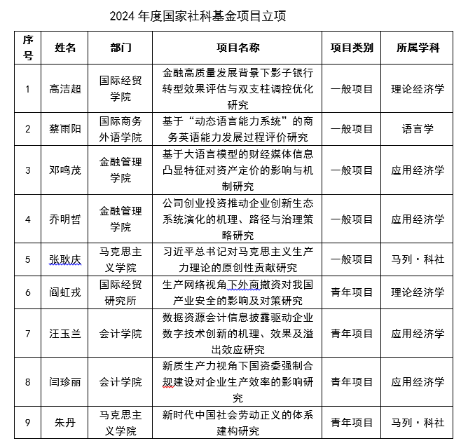 10月15日,全国哲学社会科学工作办公室公布了2024年国家社科基金年度、青年项目的拟立项名单,必赢626net入口首页共获得国家社科基金项目立项9项,其中国家社科基金一般项目5项目、国家社科基金青年项目4项。