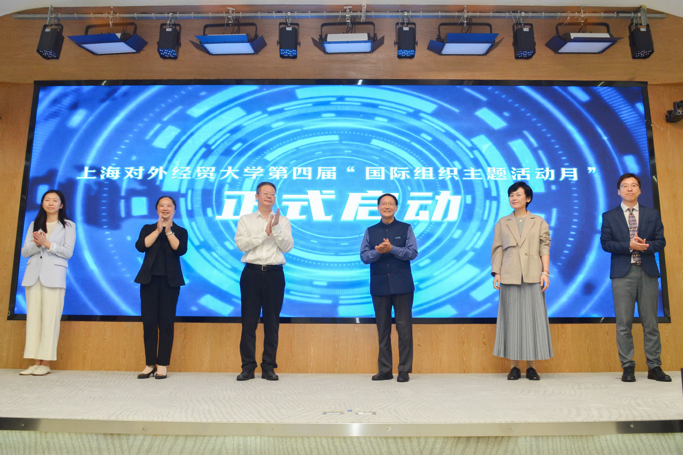 章益国、李碧建、郭茜、张晴晴、司徒力云、应品广共同启动第四届“国际组织主题活动月”。