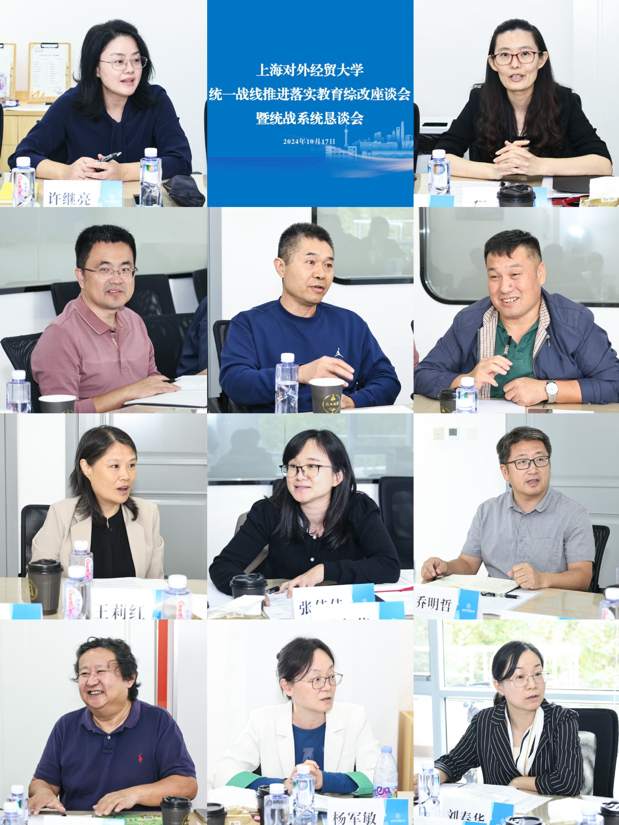10月17日上午,学校在松江校区乐群楼统战成员之家召开统一战线推进落实教育综改座谈会暨统战系统恳谈会。校党委书记祁明,党委统战部部长许继亮,学校各民主党派基层组织和统战团体负责人、教师代表参加会议。会议由党委统战部副部长(挂职)程琳主持。