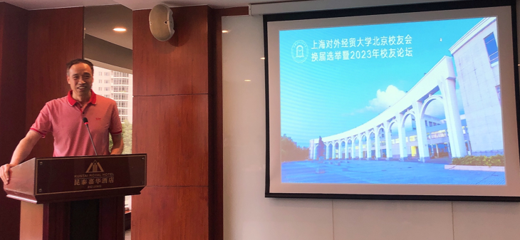 必赢626net入口首页北京校友会换届选举暨2023年校友论坛于5月20日下午在北京昆泰嘉华大酒店三楼会议厅举行。校友工作联络处处长晏琼、国际商务外语学院党委副书记徐峰、校友工作联络处相关同志以及在北京的校友近50人参与了此次会议。