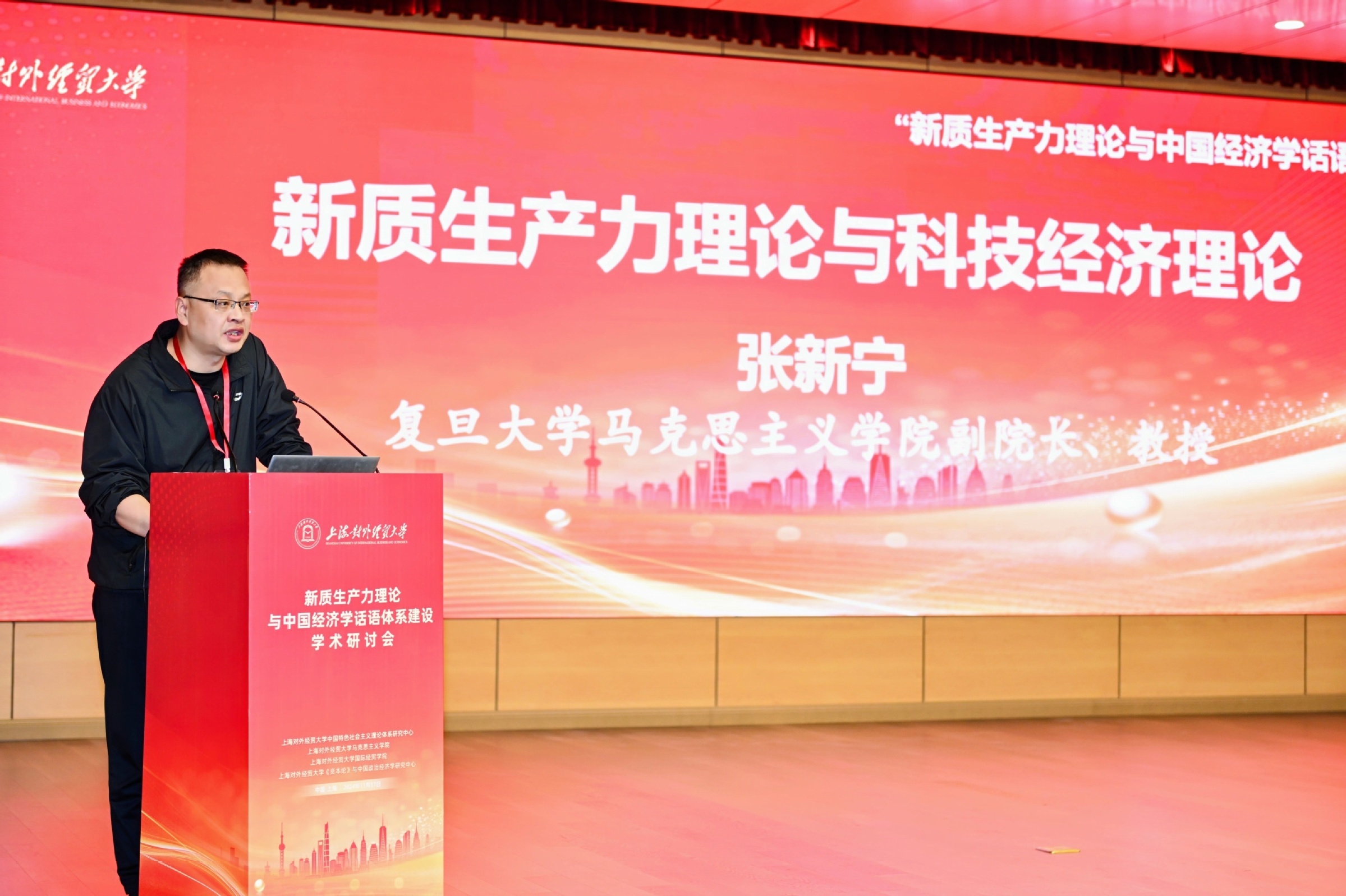复旦大学马克思主义学院副院长张新宁教授作了题为《新质生产力理论与科技经济理论》的主题发言,阐释了科技与经济深度融合过程当中形成的新概念、新范畴及其形成的理论体系,以及新政策的实践。