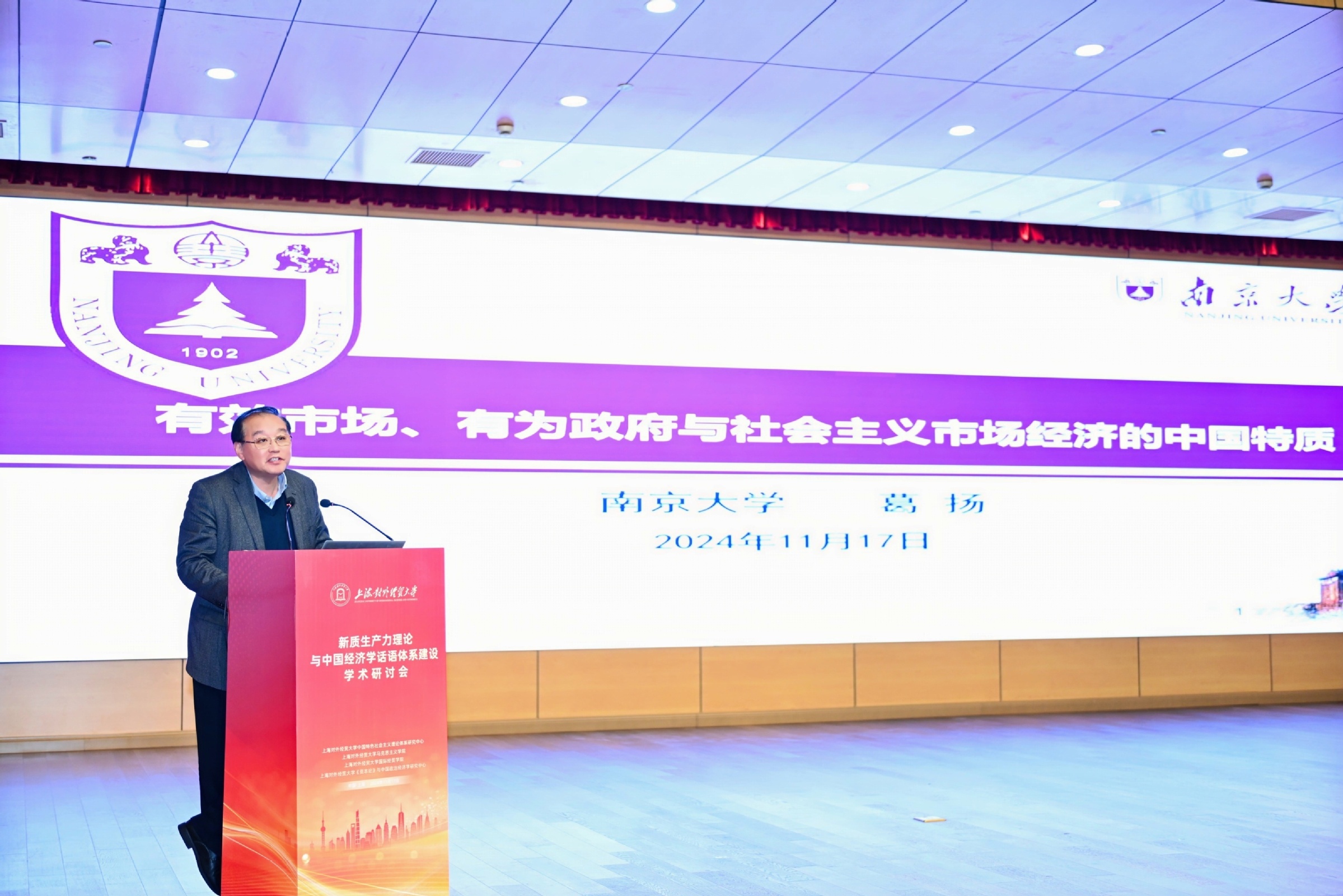 南京大学经济学院葛扬教授作了题为《有为政府、有效市场:社会主义市场经济的中国特质》的主题发言,从政府和市场的关系角度,构建了发展新质生产力的体制机制。