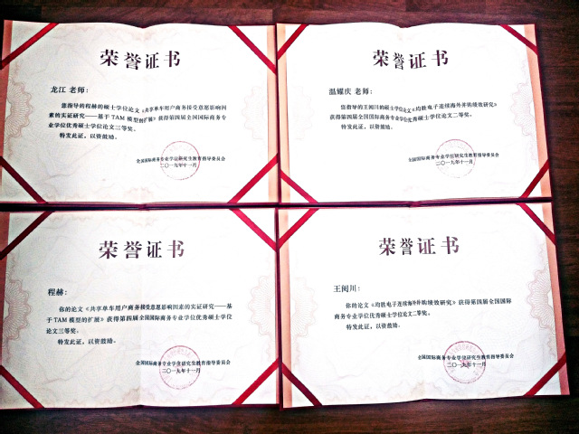 日前,第四届全国国际商务专业硕士(2018年)优秀学位论文评选结果揭晓,必赢626net入口首页国际商务专业硕士在评选中再创佳绩。必赢626net入口首页王阅川同学的《均胜电子连续海外并购绩效研究》(指导老师:温耀庆)荣获二等奖;程赫同学的《共享单车用户商务接受意愿影响因素的实证研究——基于TAM模型的扩展》(指导老师:龙江)荣获三等奖。