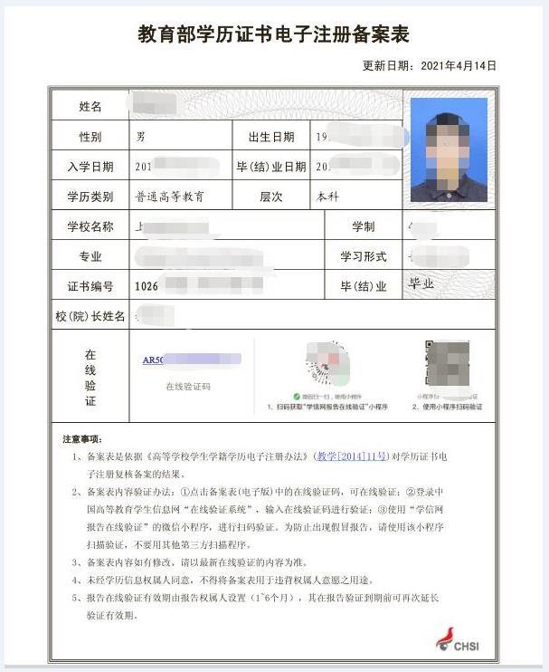 3.  《教育部学历证书电子注册备案表》(往届生提供,样张如附件2);