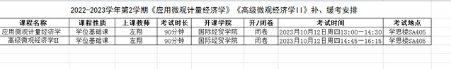 2022-2023学年第2学期《应用微观计量经济学》《高级微观经济学II》补、缓考安排
