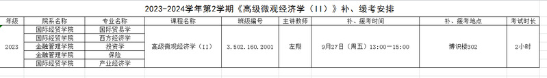 2023-2024学年第2学期《高级微观经济学(II)》补、缓考安排